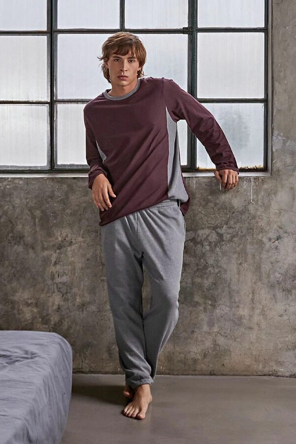 G3 1056 - PIJAMA INVIERNO DE JERSEY DE ALGODÓN Y WAFFLE CON RECORTES (G3-1056)